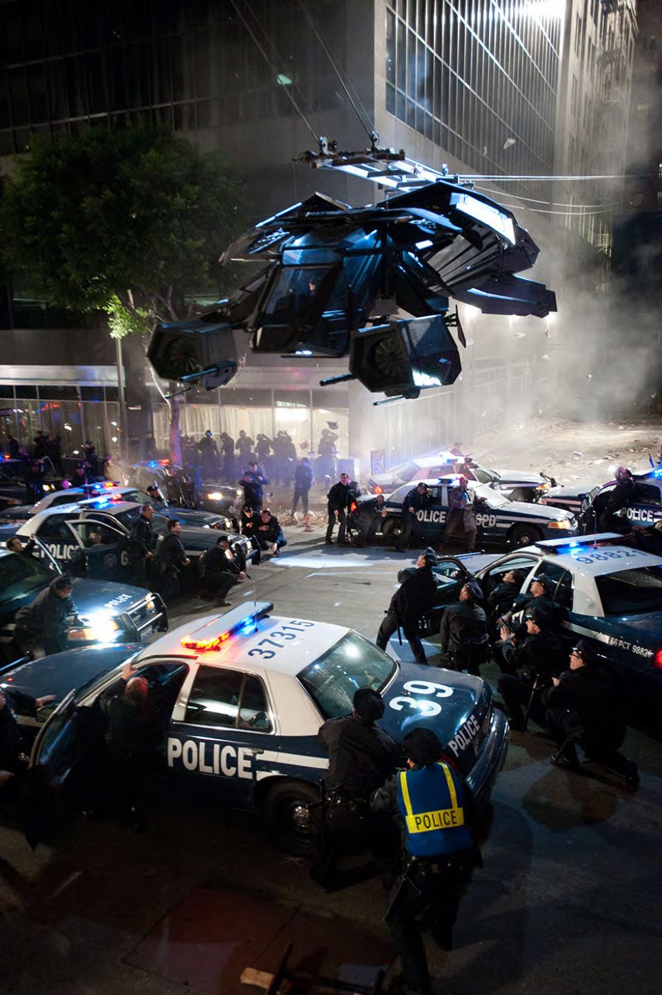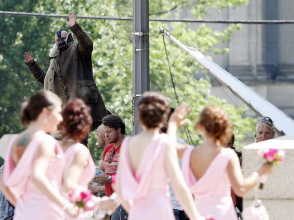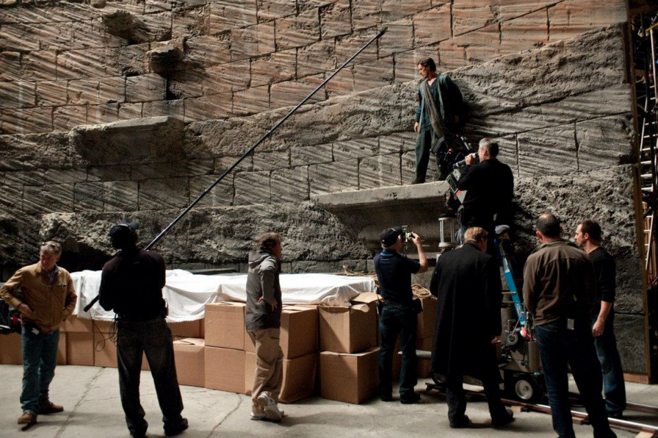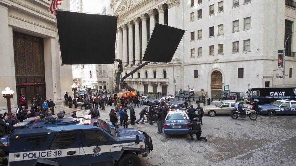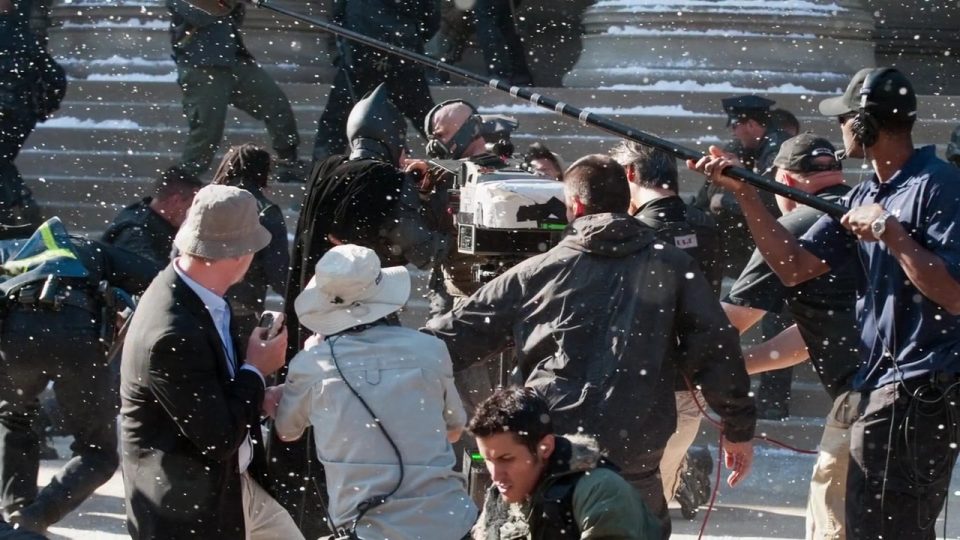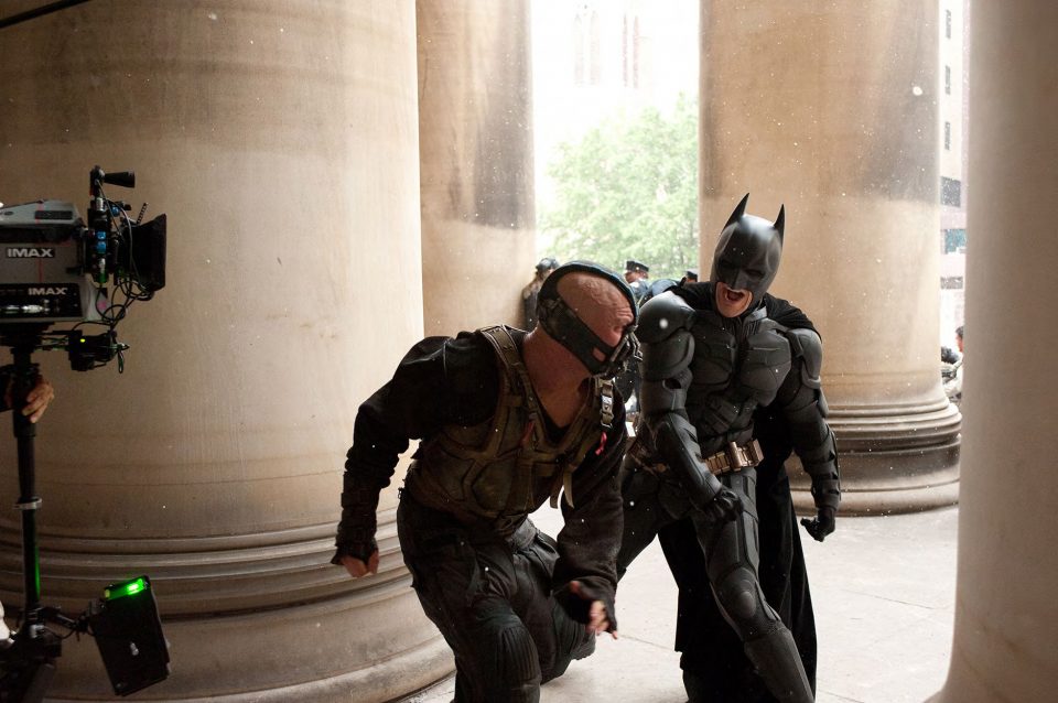 Durante la ricerca delle location nel dicembre 2010, Nolan è partito da luoghi come l'India, Romania, e nel Michigan.[80][81] Secondo il Romania Insider, Nolan era interessato al centro storico di Bucarest, Edgar Quinet Street, il Palazzo del Parlamento, e la miniera di sale di Turda.[80] L'inizio delle riprese è stato fissato per aprile 2011. Le riprese si sono svolte nelle seguenti location: Jodhpur, India Londra, Regno Unito Cardington, Regno Unito Pittsburgh, USA Los Angeles, USA New York, USA Newark, USA La tumbler sul set del film a Pittsburgh, Pennsylvania. Alcune riprese si sono svolte a New York, ma per eseguirle sono state segnalate come riprese per Magnus Rex e Fox Hills Green, due titoli inventati al fine di non attirare troppo l'attenzione. Altre riprese si sono svolte a Newark, nel New Jersey. A giugno sono state girate alcune scene presso gli uffici Delta Point di Croydon, un borgo di Londra[86]. Sempre a Londra si sono svolte le riprese per gli interni di Villa Wayne, ad Osterley Park. Wollaton Hall nel 2010 Il set degli esterni per Villa Wayne è stato allestito tra il 20 giugno e il 6 luglio a Wollaton Hall, presso Nottingham, un edificio molto simile a Mentmore Towers, utilizzato come Villa Wayne in Batman Begins. Nel corso delle riprese, un camion ha sfondato alcune delle pareti dell'edificio, senza però riportare feriti o danni gravi[88]. Ad inizio luglio sono state effettuate le riprese di numerosi paracadutisti che si sono lanciati da un jet presso il Cairngorm Gliding Club di Feshie Bridge, scena nella quale uno stuntman è atterrato da 8000 ft (2856 m) senza paracadute restando però illeso. Presso l'aeroporto di Inverness venivano invece registrate le sequenze con l'aereo militare C130 Hercules. Il 12 luglio sono state girate le sequenze d'azione presso Cardinton.